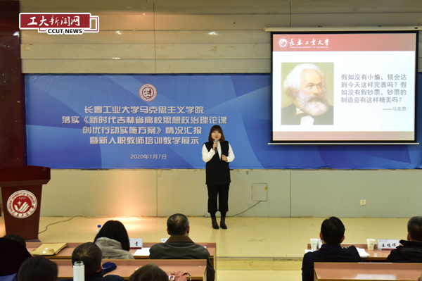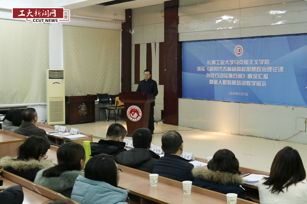 新闻网讯(通讯员 王权)1月7日,马克思主义学院在综合楼三楼报告厅举行落实《新时代吉林省高校思想政治理论课创优行动实施方案》情况汇报暨新入职教师培训教学展示活动。校党委书记王忠,党委副书记李雁冰,党委常委、宣传部部长、教师工作部部长王鸣晖,人事与人才工作处、教师教学发展中心、教学质量监控与评价中心等部门负责人出席活动。马克思主义学院党政班子成员、全体思政课专兼职教师、硕士研究生参加了活动。
